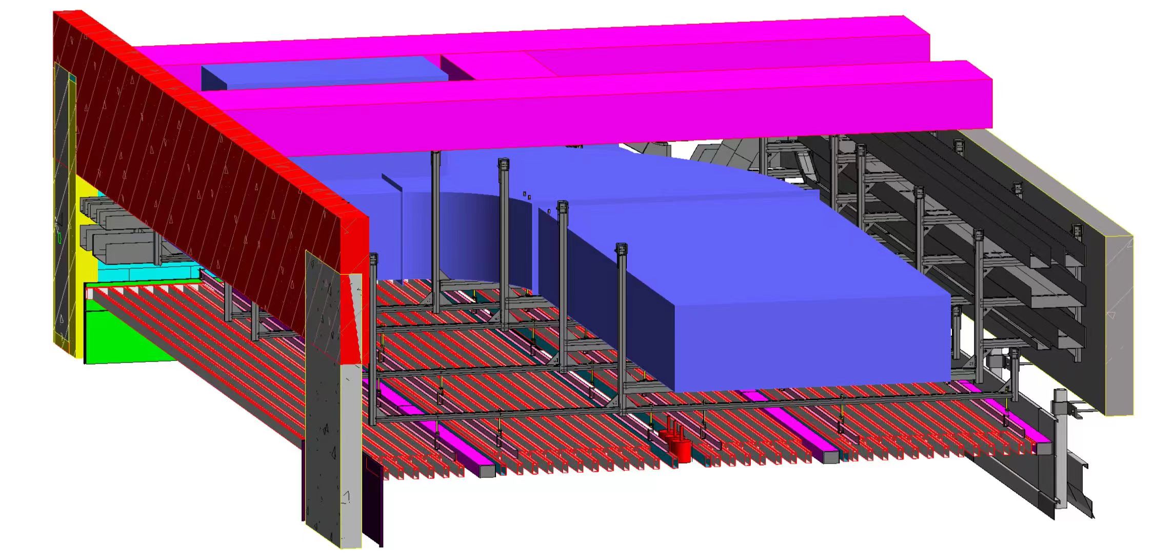 本工程分三個標(biāo)段,合計(jì)總建筑面積為56.1萬㎡,建筑最高高度34.8m,其中一、三標(biāo)段為多層大跨度鋼結(jié)構(gòu)廠房。眾所周知,對于鋼結(jié)構(gòu)廠房支架設(shè)計(jì)一直是行業(yè)內(nèi)的難題。華固充分利用BIM技術(shù),自主研發(fā)的成品